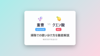 重曹とクエン酸の性質の違い、汚れ別の使い分け、混ぜて使う際の注意点をわかりやすく解説。場所別の早見表付きで、ナチュラルクリーニングの基本が身につきます。