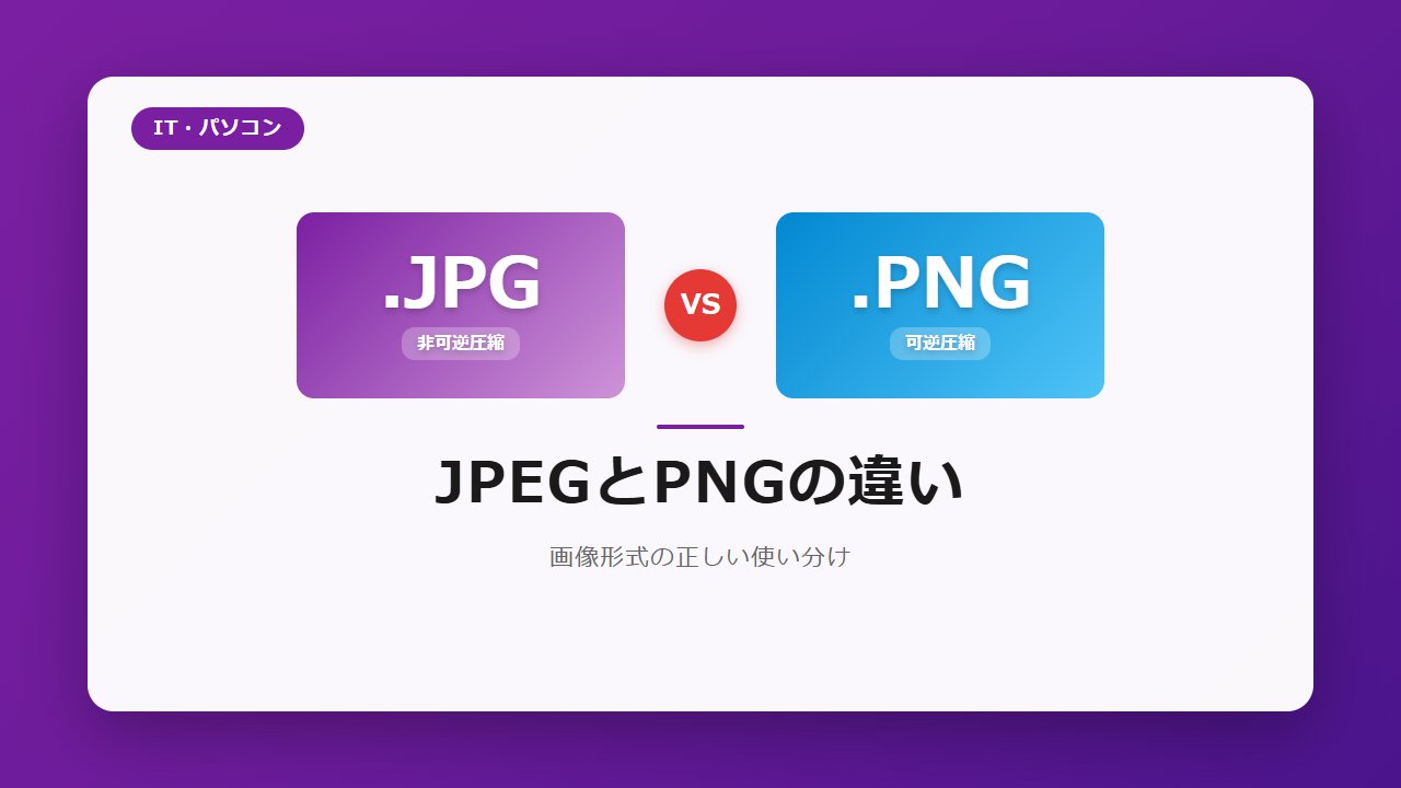 JPEGとPNGの違いをあらためて整理すると、次のとおりです。