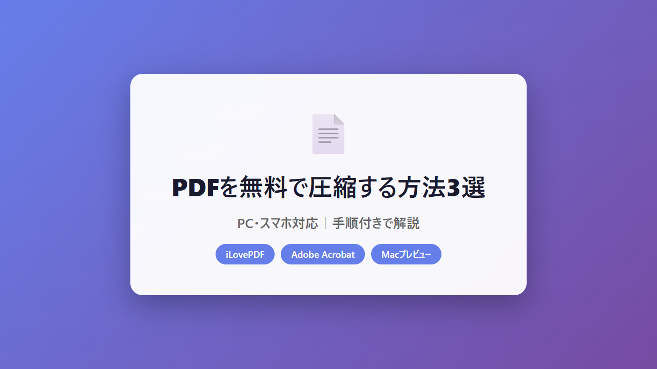 PDFファイルの容量が大きすぎて、メールに添付できなかった経験はありませんか?この記事では、PDFを無料で圧縮する方法を3つ厳選して紹介します。PC(Windows・Mac)でもスマホ(iPhone・Android)でも使える方法を、手順付きでわかりやすく解説します。